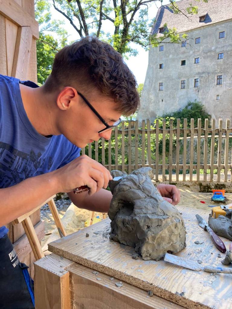 Seit Sommer 2022 entsteht, ebenfalls unter dem Motto „Reformation und Inspiration“, eine Steinskulptur auf Burg Altpernstein. In Anlehnung an die Geschichte, an die Architektur und an den Standort der Burg befasst sich der Bildhauer Simon Minichmair mit dem Begriff „Aufrichten“. Der Arbeitsprozess in Stein verlangt Kraft, Geduld und Durchhaltevermögen – Symbol für den Wandel des Menschen im Prozess des Lebens schlechthin.
