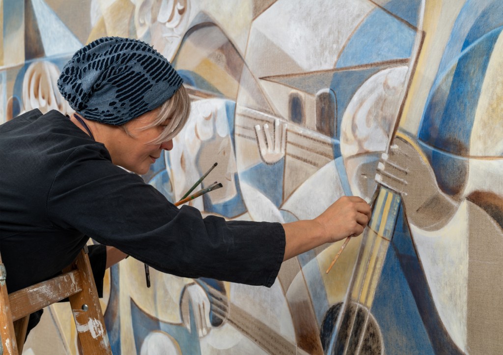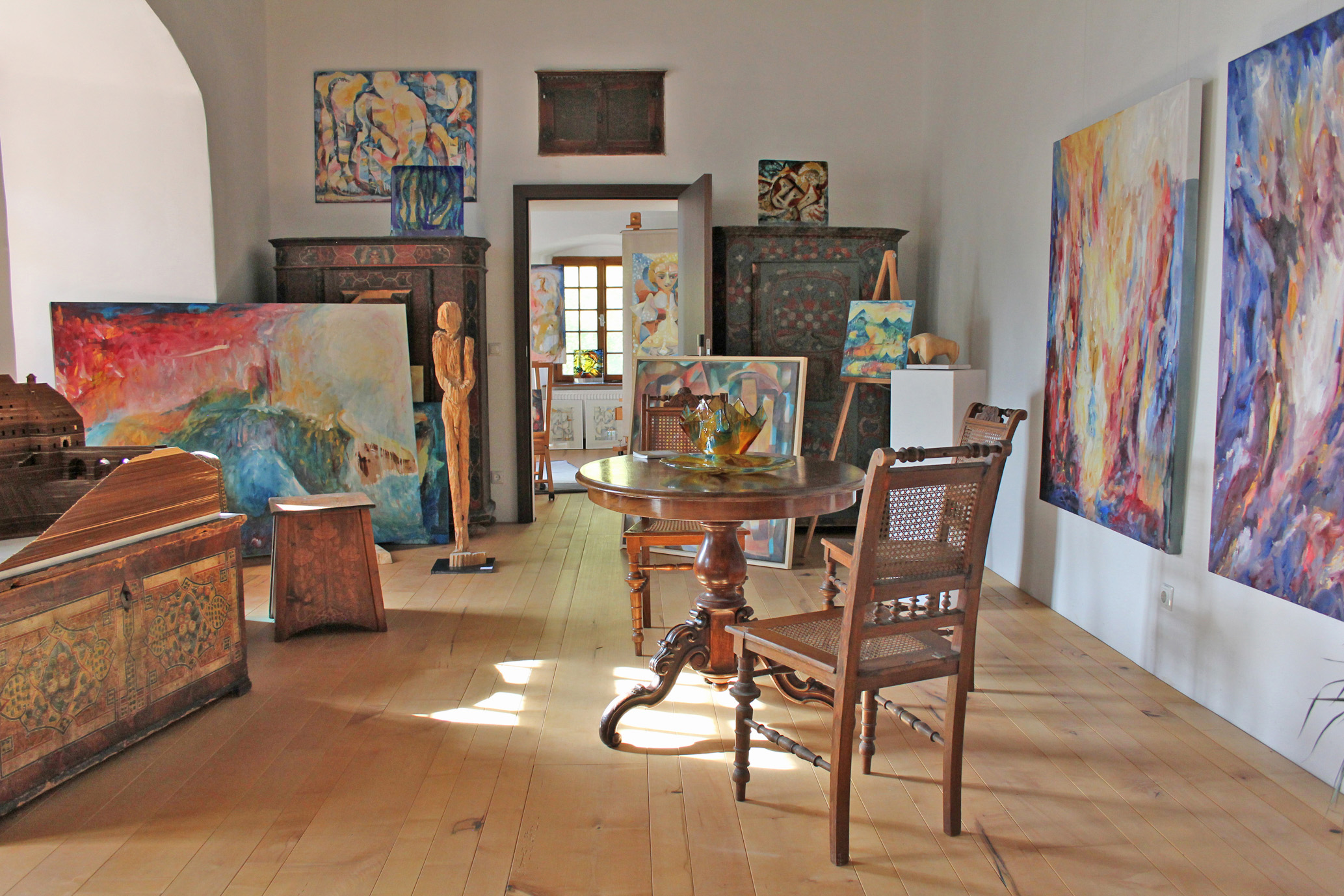 Heute lege ich meinen künstlerischen Schwerpunkt auf die malerische Spurensuche zum Thema „Individuelle Mythologien“ – das Befragen und Fortschreiben von Geschichte/n aus der Autonomie der Farbwirkung heraus und entwerfe mit den Mitteln der Malerei und Fotografie Glaskunstwerke für den sakralen und öffentlichen Raum. 2021 ergab sich die glückliche Fügung in Kooperation mit dem ISK – Institut für soziale Kompetenz, meinen inspirativen Ort des Herzens auf Burg Altpernstein in Oberösterreich zu finden. Mein Atelier ist Ort des Rückzugs und gleichzeitig Raum der Öffnung und Begegnung, in dem das Innere und das Verbindende im Menschen sich aufbauen kann.
